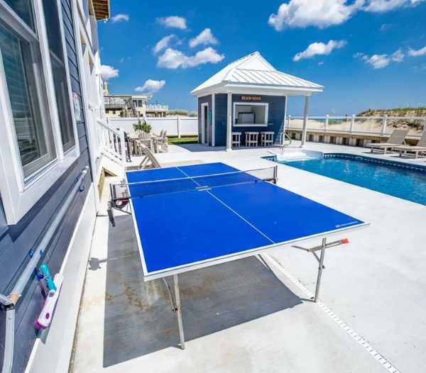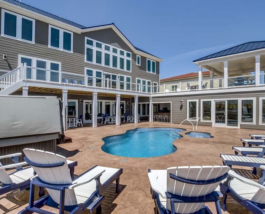 American Dream, a luxury vacation rental home in Virginia Beach built by RBC Homes, is designed for large gatherings, coastal views, and easy oceanfront living. This custom home features a spacious multi-level layout with open gathering areas, private suites, and outdoor spaces on every level. Amenities like the private pool, poolside cabana bar, hot tub, entertainment room, and wraparound decks create a relaxed setting for families and groups spending time together by the water. Inside, the home combines a modern kitchen, comfortable living spaces, and strong connection to the view throughout.