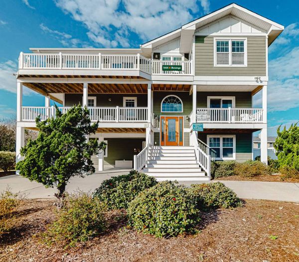 All-Sea-Suns is a custom Virginia Beach rental home designed for luxury group getaways. Seven private master suites make hosting effortless, while a top-floor chef’s kitchen (with double appliances) and fireplace lounge open to a screened porch. An elevator, game-level hangout, and resort-style pool, hot tub, and cabana complete the retreat.
